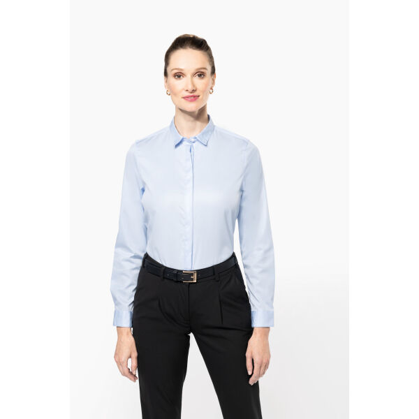 - Damesoverhemd van twill met lange mouwen